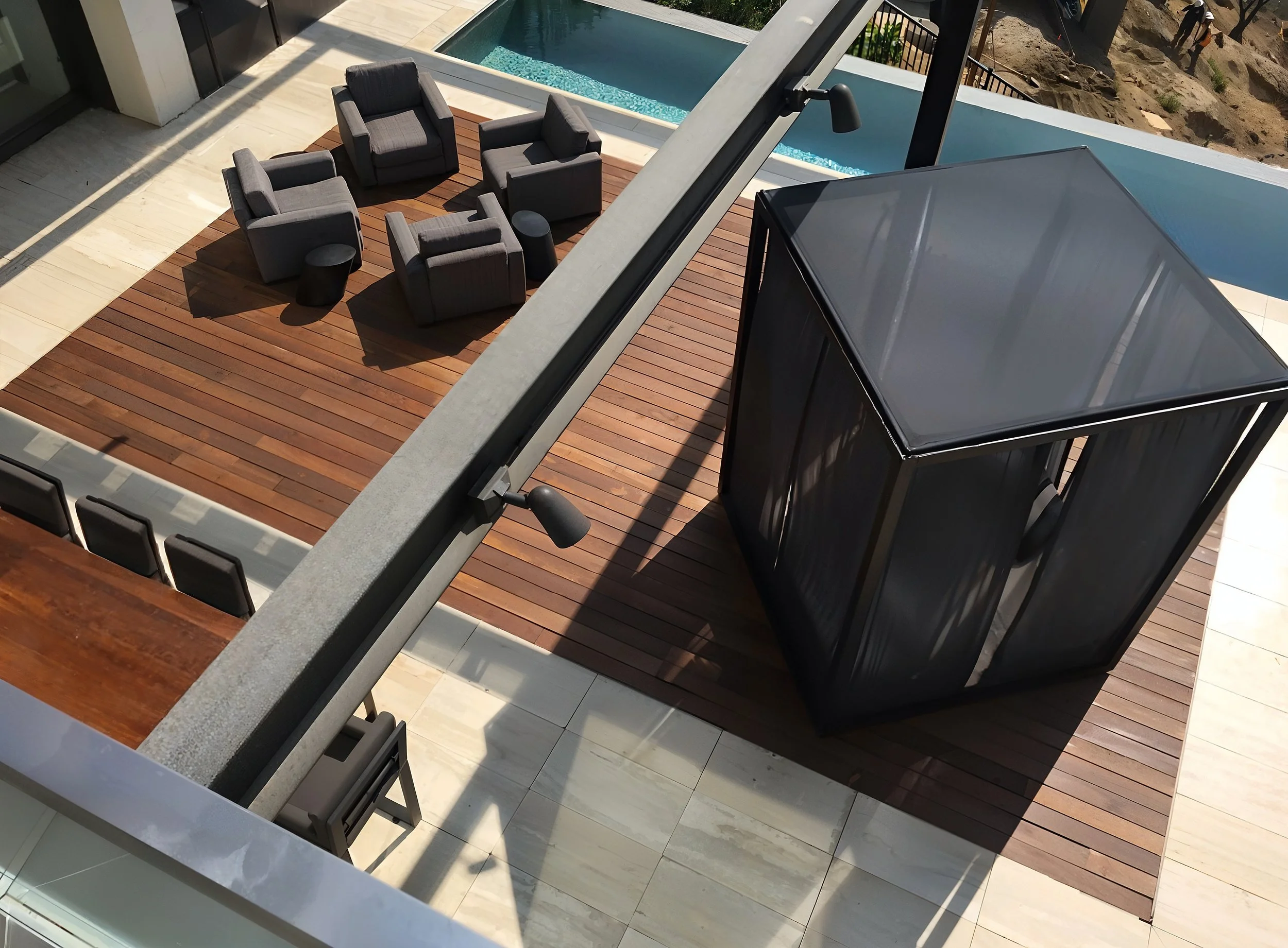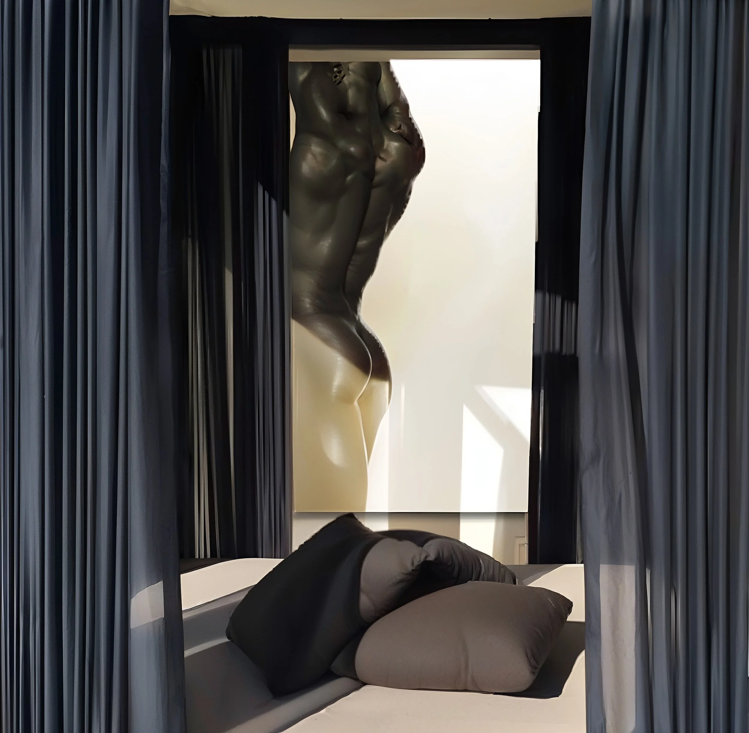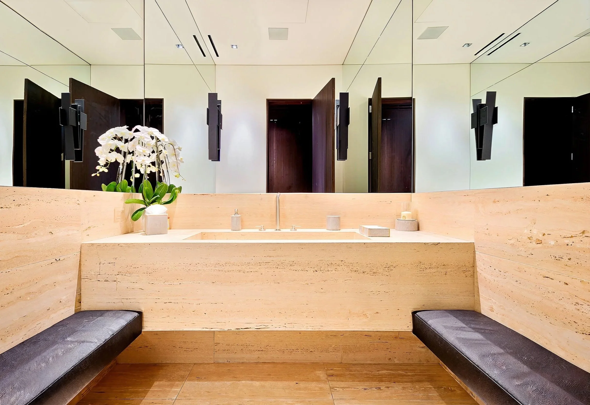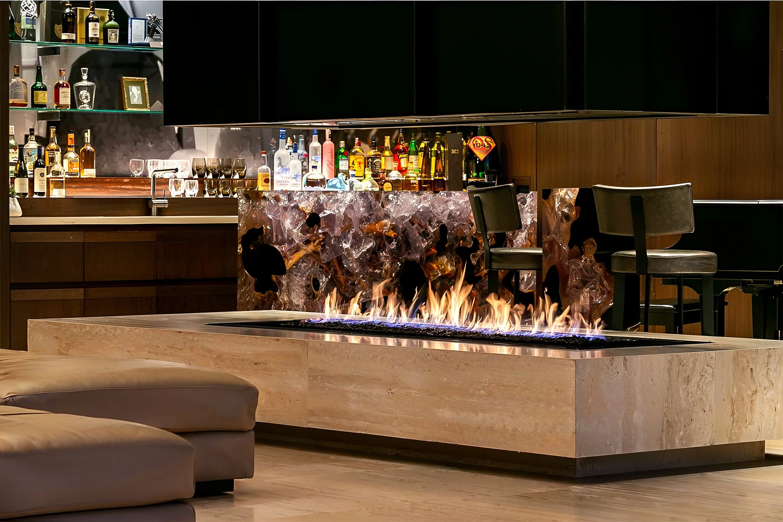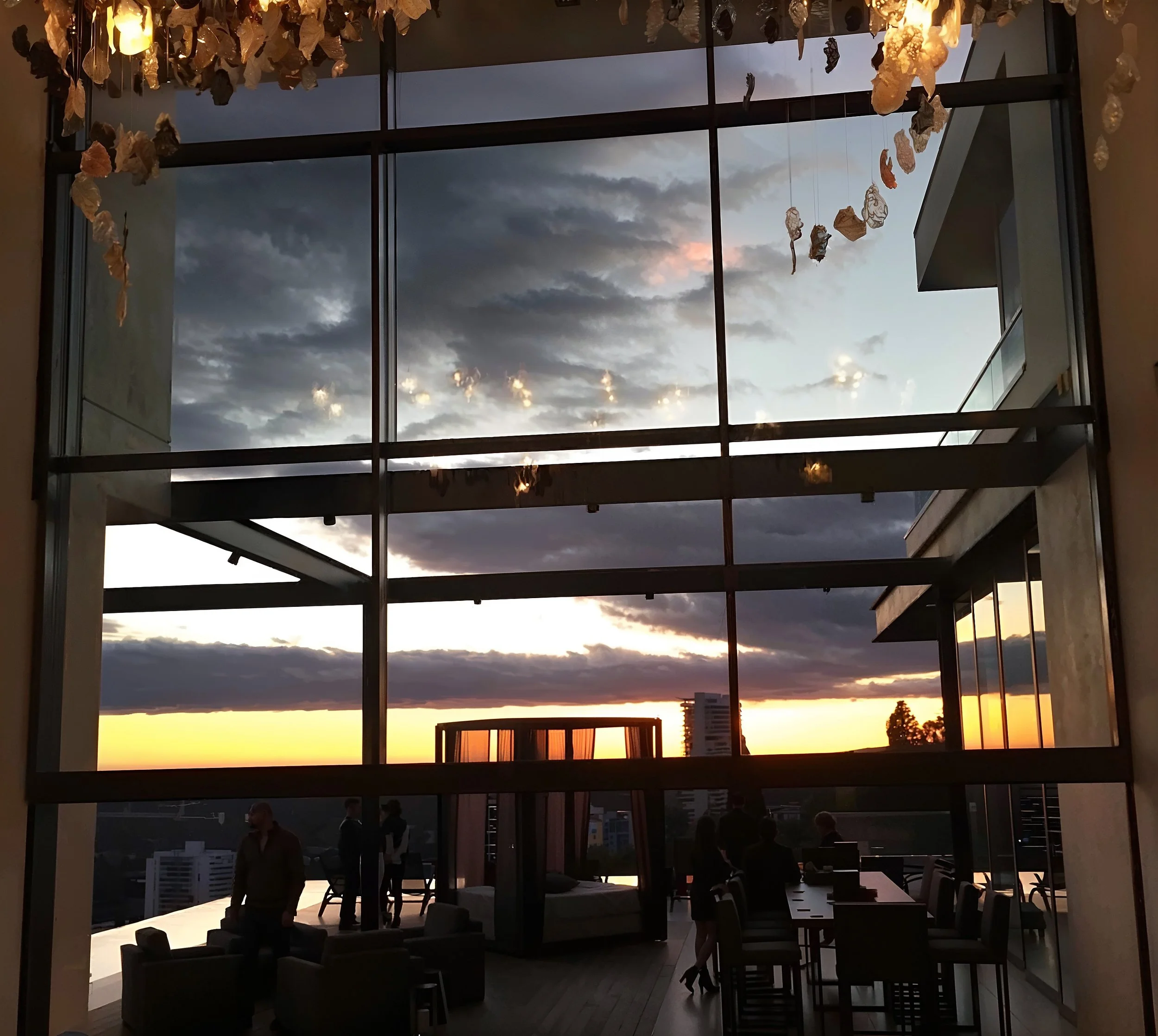 Perched high in the Hollywood Hills, this residence is the ultimate bachelor pad—designed for a high-flying businessman who wanted a home that embodies both power and indulgence. The interiors are unapologetically masculine, defined by strong architectural lines, rich materials, and bold focal points. Double-height ceilings with doors that open across two floors create a dramatic inside–outside connection, framing sweeping views over Los Angeles. At its core, the fireplace anchors the living space as a commanding focal point, while the infinity pool spills over the cliff edge for an unforgettable effect. Every element was conceived for entertainment and relaxation alike—seamlessly blending party house energy with spa-inspired calm. This is Hollywood Hills living at its most sophisticated and indulgent.